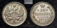 Согласно аукционным продажам, средняя цена данной николаевской монеты на 19 декабря 2025 составляет - 3900 рублей для регулярного чеканаи 130000 рублей для монет отчеканенных по технологии ПРУФ. Самый дорогой экземпляр, выставлялся 25 апреля 2019 года в Москве на российском аукционе MS67, лот номер 164. На торгах стоимость достигла 360000 российских рублей. Для серебряных 20 копеек 1915 года с буквами ВС - это является самой высокой ценой на сегодняшний день.