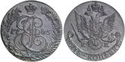 Согласно аукционным продажам, средняя цена данной екатериновской монеты на 18 декабря 2025 составляет - 10000 рублей для регулярного чекана. Самый дорогой экземпляр, выставлялся 22 февраля 2014 года в Москве на российском аукционе Аукционный Дом "Империя", лот номер 105. На торгах стоимость достигла 35000 российских рублей. Для медных 5 копеек 1785 года с буквами КМ - это является самой высокой ценой на сегодняшний день.