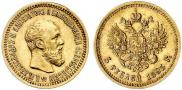 Согласно аукционным продажам, средняя цена данной монеты на 20 декабря 2025 составляет - 220000 рублей для регулярного чекана. Самый дорогой экземпляр, выставлялся 13 января 2025 года в Далласе на американском аукционе Heritage Auction Galleries, лот номер 32115. На торгах стоимость достигла 67500 долларов США. Для золотых 5 рублей 1893 года с буквами (АГ) - это является самой высокой ценой на сегодняшний день.