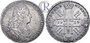В таблице показаны цены на царскую монету 1 рубль 1729 года "Тип 1727" выполненной из серебра. Голова не разделяет надпись. Продажи фиксируются на публичных нумизматических аукционах всего мира. Стоимость продажи указана без учета комиссионного вознаграждения аукциона.