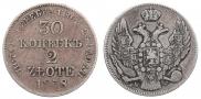 В таблице показаны цены на царскую монету 30 копеек - 2 злотых 1838 года MW выполненной из серебра. Хвост орла прямой. Продажи фиксируются на публичных нумизматических аукционах всего мира. Стоимость продажи указана без учета комиссионного вознаграждения аукциона.