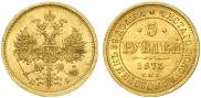 В таблице показаны цены на царскую монету 5 рублей 1873 года СПБ-НІ выполненной из золота. Продажи фиксируются на публичных нумизматических аукционах всего мира. Стоимость продажи указана без учета комиссионного вознаграждения аукциона.