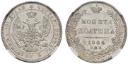 В таблице показаны цены на царскую монету Полтина 1844 года СПБ-КБ выполненной из серебра. Орел 1843. Продажи фиксируются на публичных нумизматических аукционах всего мира. Стоимость продажи указана без учета комиссионного вознаграждения аукциона.