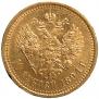 Монета 10 рублей 1894 года (АГ) чеканилась на Санкт-Петербургском монетном дворе во времена Александра III. Гуртовое оформление в виде надписи. Монета среднего размера имеет диаметр 24,6 мм, вес 12,90 гр, выполнена из золота 900 пробы. Руководителем монетного двора был Аполлон Грасгоф, о чем свидетельствует знак минцмейстера АГ. Несмотря на то что 1894 год самый частый среди червонцев Александра III, средняя стоимость на аукционах составляет 200000 рублей.
