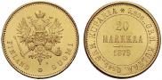 В таблице показаны цены на царскую монету 20 марок 1879 года S выполненной из золота. Продажи фиксируются на публичных нумизматических аукционах всего мира. Стоимость продажи указана без учета комиссионного вознаграждения аукциона.