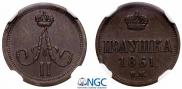 В таблице показаны цены на царскую монету Полушка 1861 года ВМ выполненной из меди. Продажи фиксируются на публичных нумизматических аукционах всего мира. Стоимость продажи указана без учета комиссионного вознаграждения аукциона.