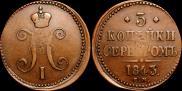 Согласно аукционным продажам, средняя цена данной монеты на 18 декабря 2025 составляет - 70000 рублей для регулярного чекана. Самый дорогой экземпляр, выставлялся 06 июня 2024 года в Москве на российском аукционе Аукционный дом "Русский Нумизматический Дом", лот номер 131. На торгах стоимость достигла 850000 российских рублей. Для медных 3 копеек 1843 года с буквами ЕМ - это является самой высокой ценой на сегодняшний день.