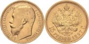 В таблице показаны цены на царскую монету 15 рублей 1897 года (АГ) выполненной из золота. Три последние буквы заходят за обрез шеи. Продажи фиксируются на публичных нумизматических аукционах всего мира. Стоимость продажи указана без учета комиссионного вознаграждения аукциона.
