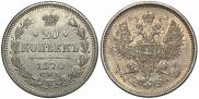 Согласно аукционным продажам, средняя цена данной монеты на 18 декабря 2025 составляет - 10000 рублей для регулярного чекана. Самый дорогой экземпляр, выставлялся 31 октября 2019 года в Москве на российском аукционе MS67, лот номер 126. На торгах стоимость достигла 92500 российских рублей. Для серебряных 20 копеек 1870 года с буквами СПБ HI - это является самой высокой ценой на сегодняшний день.