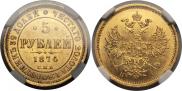 В таблице показаны цены на царскую монету 5 рублей 1874 года СПБ-НІ выполненной из золота. Продажи фиксируются на публичных нумизматических аукционах всего мира. Стоимость продажи указана без учета комиссионного вознаграждения аукциона.