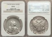 В таблице показаны цены на царскую монету 1 рубль 1744 года СПБ выполненной из серебра. Продажи фиксируются на публичных нумизматических аукционах всего мира. Стоимость продажи указана без учета комиссионного вознаграждения аукциона.