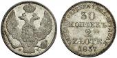 year на аукционе . Цена 1600 EUR 30 копеек - 2 злотых 1837 year. Eagle's tail is straight, Биткин # 1155