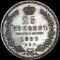 25 копеек 1852 year. Широкая корона, Биткин # 305 (R1), Петров 2,5 руб., Ильин 3 руб. |