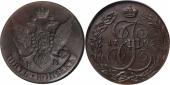 5 копеек 1787 year. Royal crowns. "ЕМ" large, Биткин # 1289 (R2), Петров 30 руб., Ильин 30 руб. |