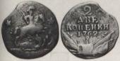 4 копейки 1762 year. Биткин # 21, Петров 0,75-1 руб. |