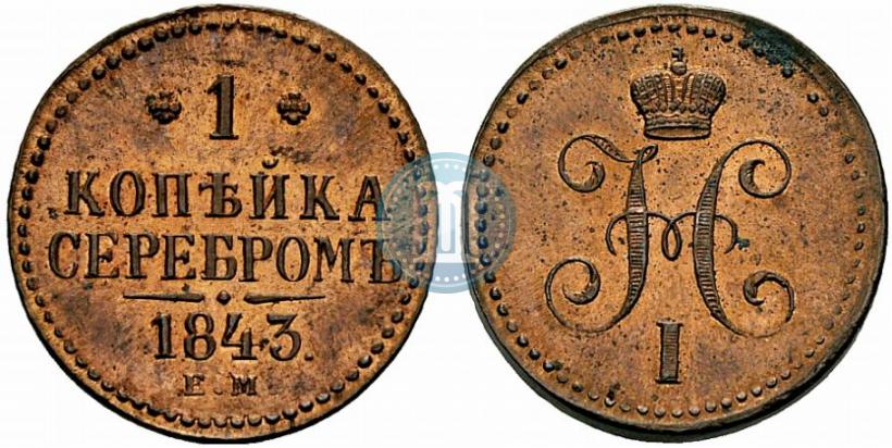 1 kopeck 1843 year ЕМ . Copper. Edge plain. Conros # 216/11