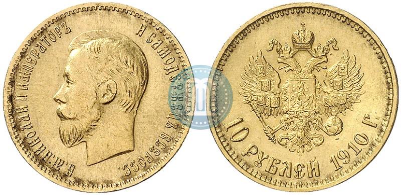 10 roubles 1910 year (ЭБ) . Gold. Edge inscription. Bitkin # 15 (R), Conros # 8/13