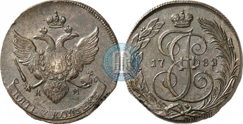 5 kopecks 1788 year КМ . "KM" small. Copper. Edge cordlike leftwards. Bitkin # 797 (R), Petrov - 35 rub., Conros # 180/160