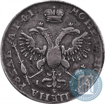 1 rouble 1719 year OK-IL-L "Portrait in armour". Rivets on chest. Silver. Edge inscription.