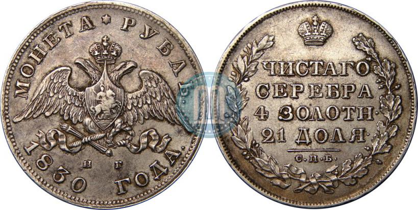 1 rouble 1830 year СПБ-НГ . Short ribbons. Silver. Edge inscription. Petrov - 1,5 rub., Conros # 78/5