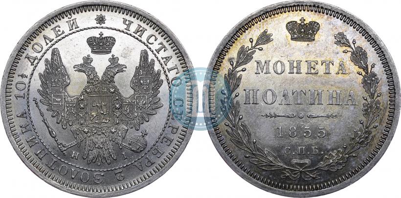 Poltina 1855 year СПБ-НІ . Silver. Edge inscription. Petrov - 1 rub., Conros # 118/53