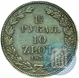 1,5 roubles - 10 złotych 1836 year НГ . Narrow crown. Silver. Edge inscription. Petrov - 2 rub.