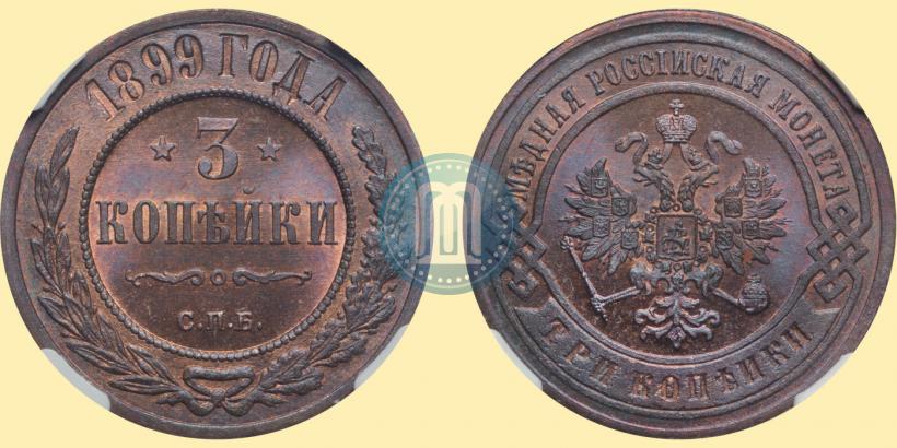 3 kopecks 1899 year СПБ . Copper. Edge ribbed. Conros # 190/33
