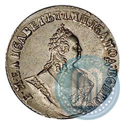 Grivennik 1757 year МБ . Silver. Edge cordlike leftwards. Petrov - 0,75 rub., Conros # 154/21