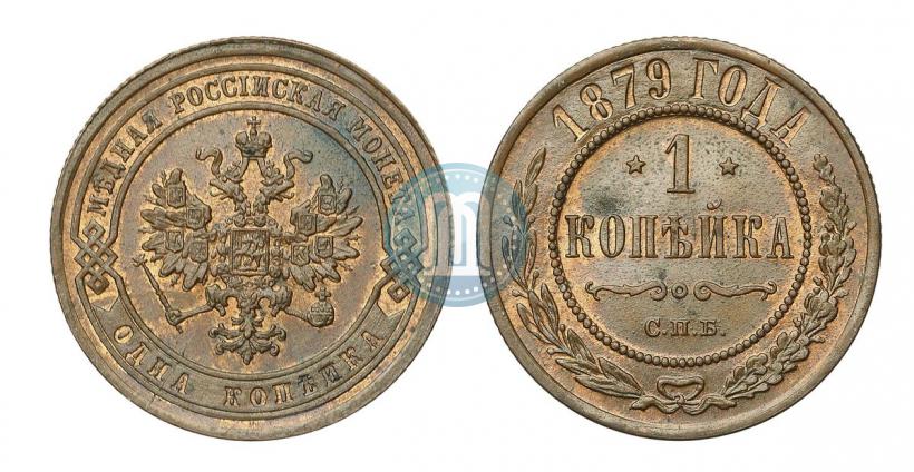 1 kopeck 1879 year СПБ . Copper. Edge ribbed. Conros # 218/19