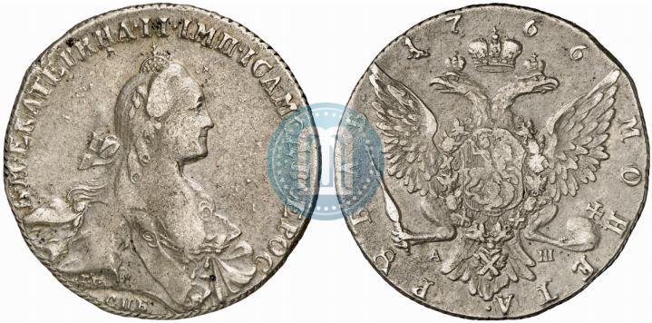 1 rouble 1766 year СПБ-АШ . Standard portrait. Silver. Edge cordlike leftwards. Petrov - нет rub., Ilyin - 5 rub., Conros # 70/21