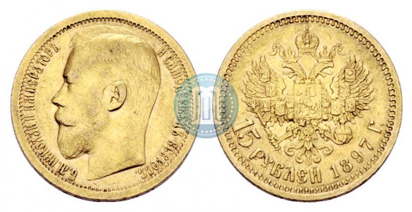 15 roubles 1897 year (АГ) . Two last letters are above the edge of the neck. Gold. Edge inscription. Bitkin # 1 (R), Conros # 1/1