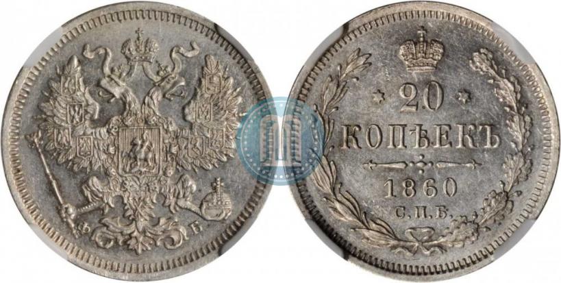 Picture 20 kopecks 1860 year СПБ-ФБ "Type of 1861-1866"