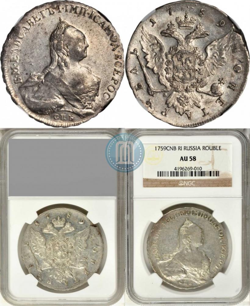 1 rouble 1759 year СПБ-ЯI . Silver. Edge inscription. Petrov - 3,5 rub., Conros # 68/11