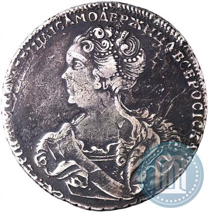 1 rouble 1725 year СПБ "Petersburg type, portrait turned to the left". "СПБ" under the eagle. "САМОДЕРЖИЦА". Silver. Edge cordlike leftwards.