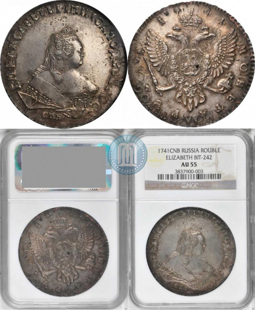 1 rouble 1741 year СПБ . Silver. Edge inscription. Bitkin # 239 (R1), Petrov - 15 rub., Ilyin - 5 rub., Conros # 64/2