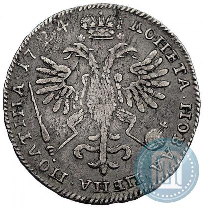 Poltina 1724 year "Portrait in ancient armour". Portrait divide the legend. Wide tail. Silver. Edge inscription. Bitkin # 1061 (R-R1)