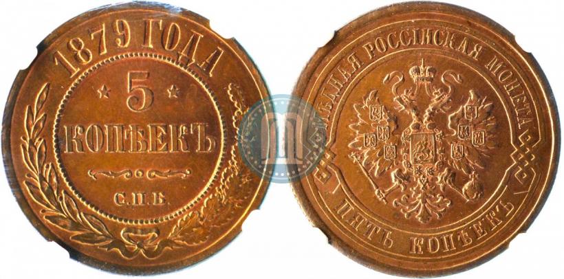 5 kopecks 1879 year СПБ . Copper. Edge ribbed. Conros # 185/19