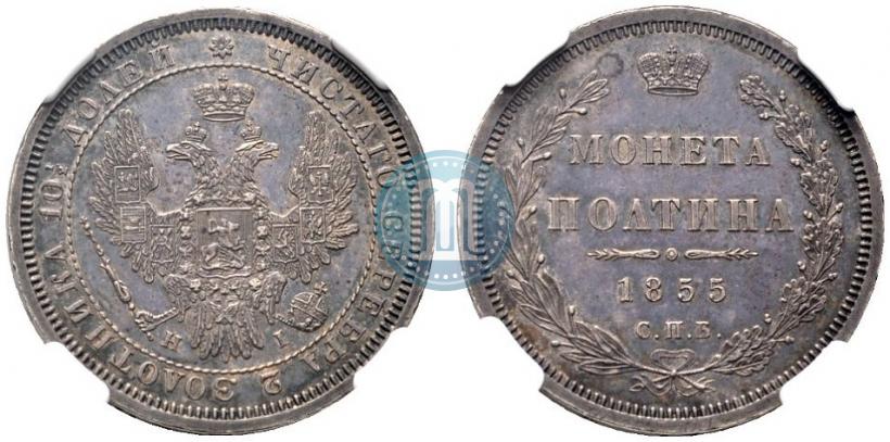 Poltina 1855 year СПБ-НІ . Silver. Edge inscription. Petrov - 1 rub., Conros # 118/53