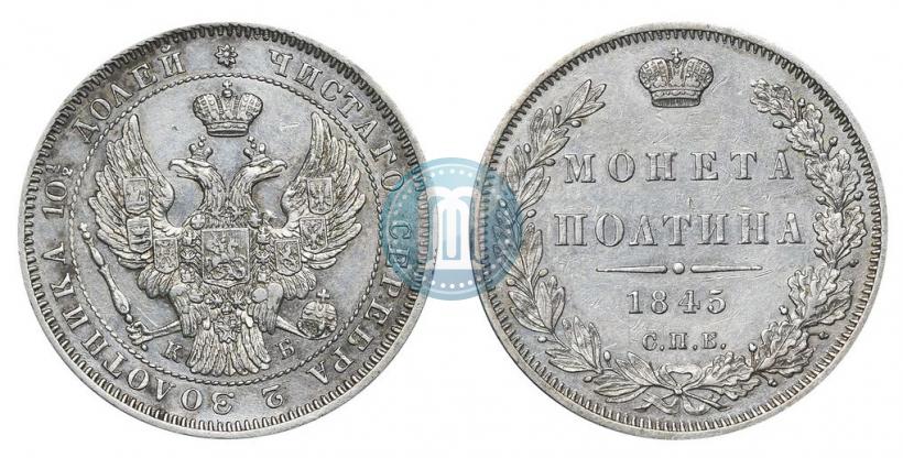 Poltina 1845 year СПБ-КБ . Silver. Edge inscription. Petrov - 0,75 rub., Conros # 118/31