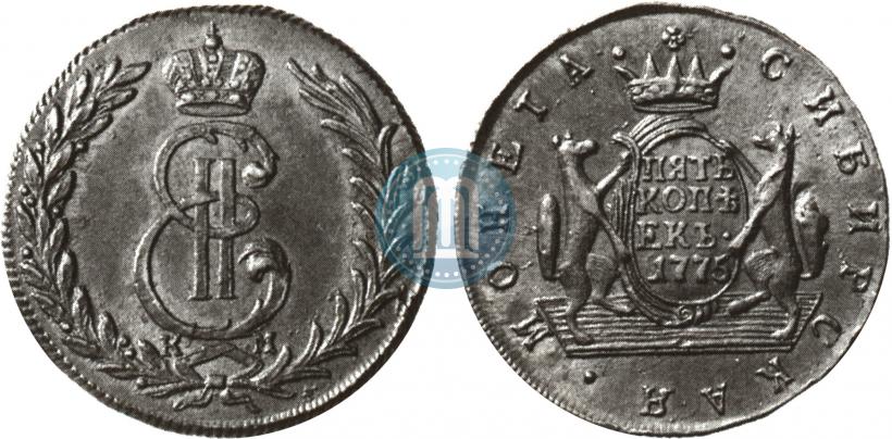 5 kopecks 1774 year КМ . Copper. Edge cordlike leftwards. Conros # 179/12
