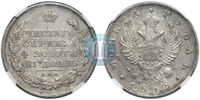 1 rouble 1818 year СПБ-ПС . Eagle of 1814. Silver. Edge inscription. Petrov - нет rub., Ilyin - 5 rub., Conros # 77/19