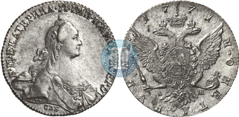 1 rouble 1771 year СПБ-АШ . Silver. Edge cordlike leftwards. Petrov - 2,5 rub., Conros # 70/60