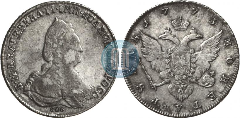 1 rouble 1793 year СПБ . Silver. Edge cordlike leftwards. Bitkin # 260 (R2), Petrov - 35 rub., Ilyin - 10 rub., Conros # 71/23