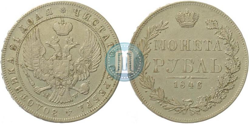 1 rouble 1846 year MW . Eagle's tail is curved. Silver. Edge inscription. Petrov - 2 rub., Conros # 79/148