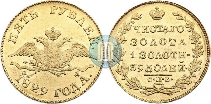5 roubles 1829 year СПБ-ПД . Gold. Edge dotted. Ilyin - 20 rub., Conros # 16/12