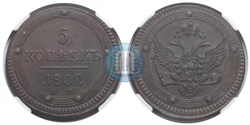 5 kopecks 1802 year ЕМ . Copper. Edge cordlike leftwards. Conros # 182/1