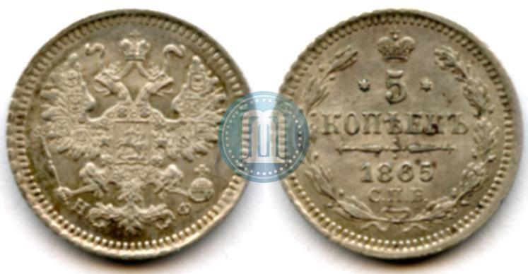 5 kopecks 1865 year СПБ-НФ . Silver. Edge dotted. Conros # 170/26