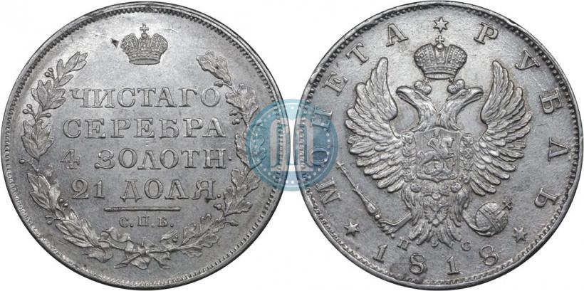 1 rouble 1818 year СПБ-ПС . Eagle of 1814. Silver. Edge inscription. Petrov - нет rub., Ilyin - 5 rub., Conros # 77/19
