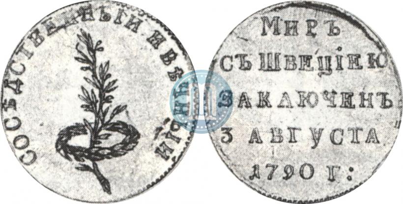 Token Coin 1790 year "Peace with Sweden". Gold. Edge cordlike leftwards. Bitkin # 1390 (R2)