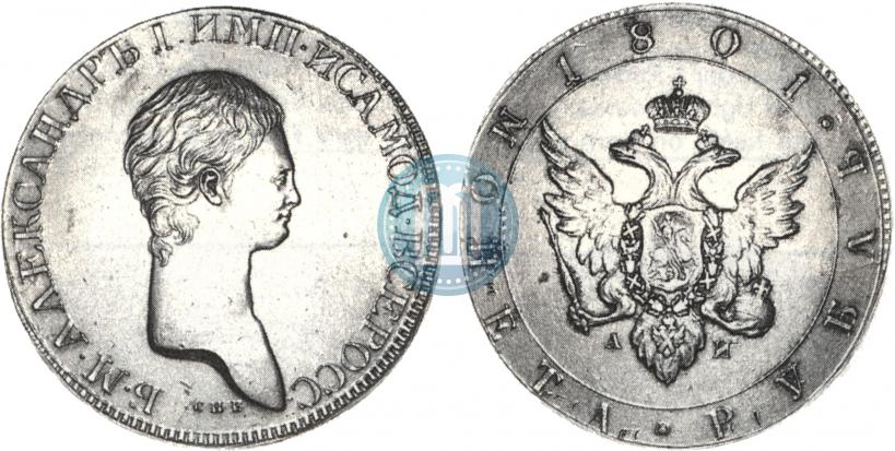 1 rouble 1801 year СПБ-AИ "A portrait with a long neck. Pattern". Restrike. Silver. . Bitkin # 637 (R1, R4)